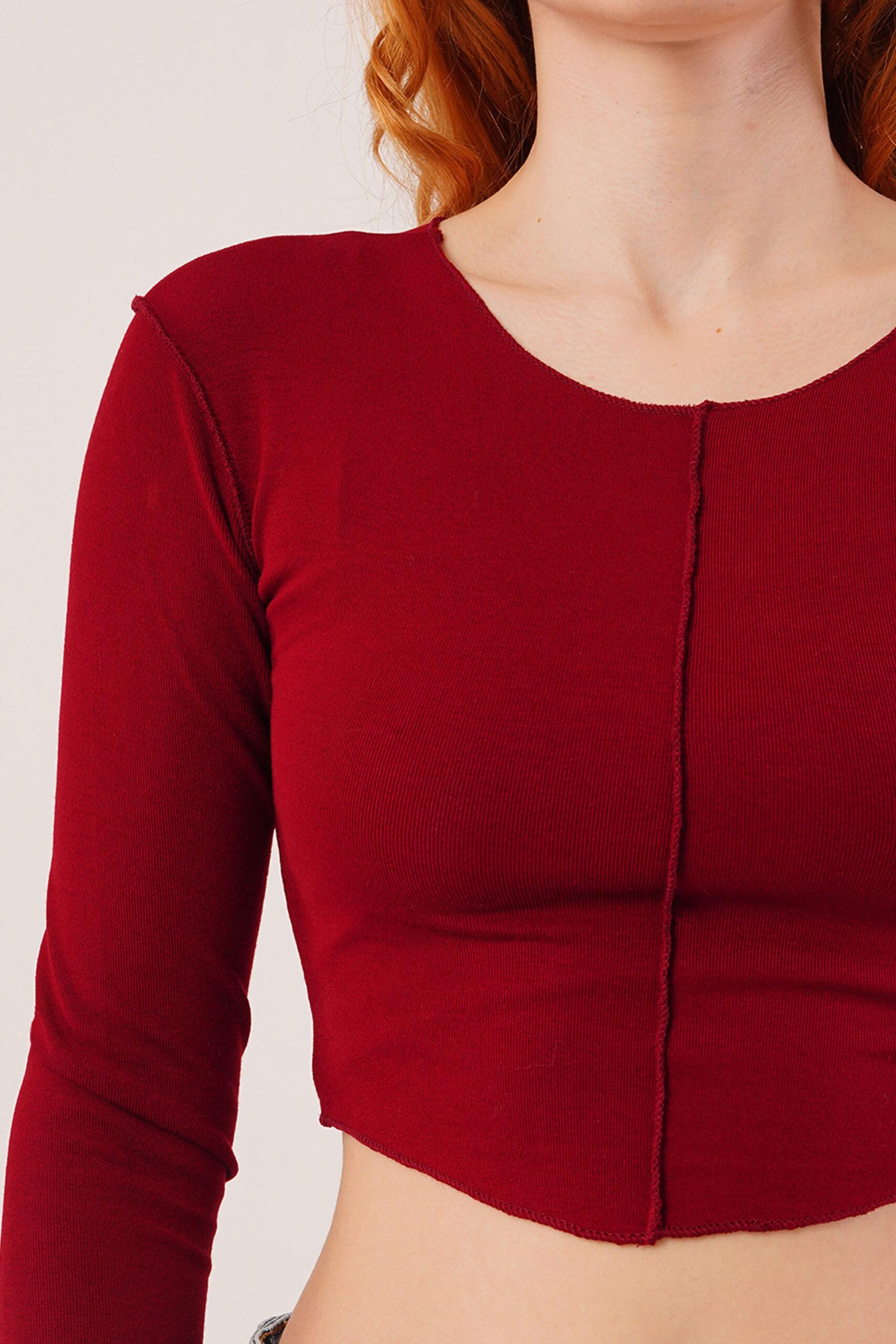 Basic Wholesale Burgundy Body Blouse With Reverse Stitch