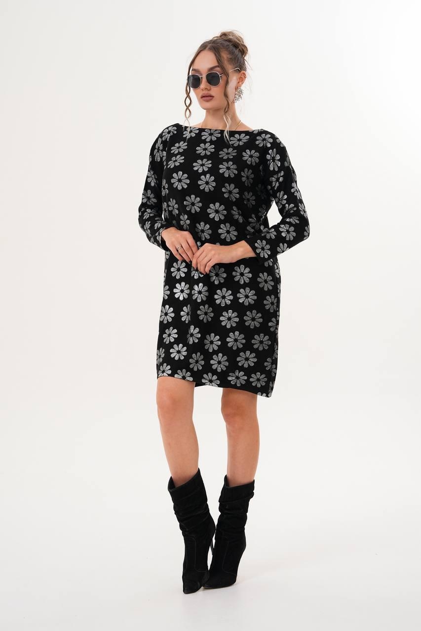 Black Floral Shift Dress With Long Sleeves