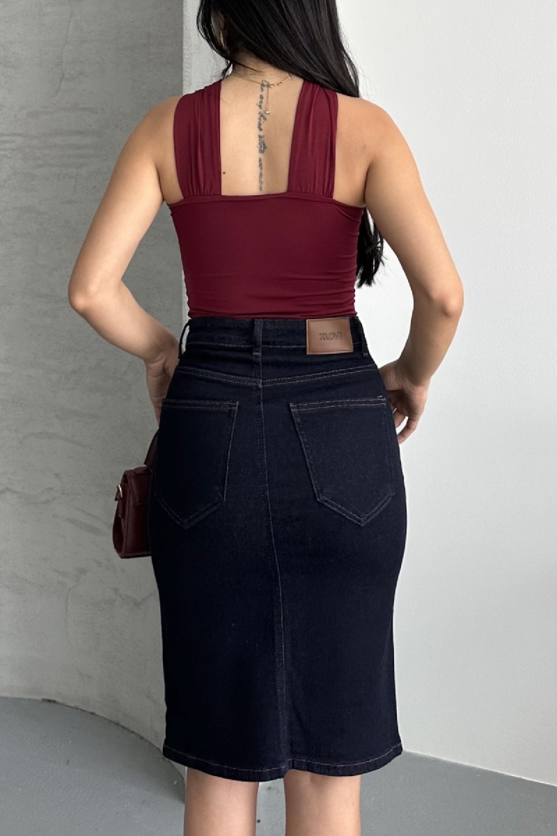 Blue Elegant Pencil Midi Skirt With Buttoned Closure