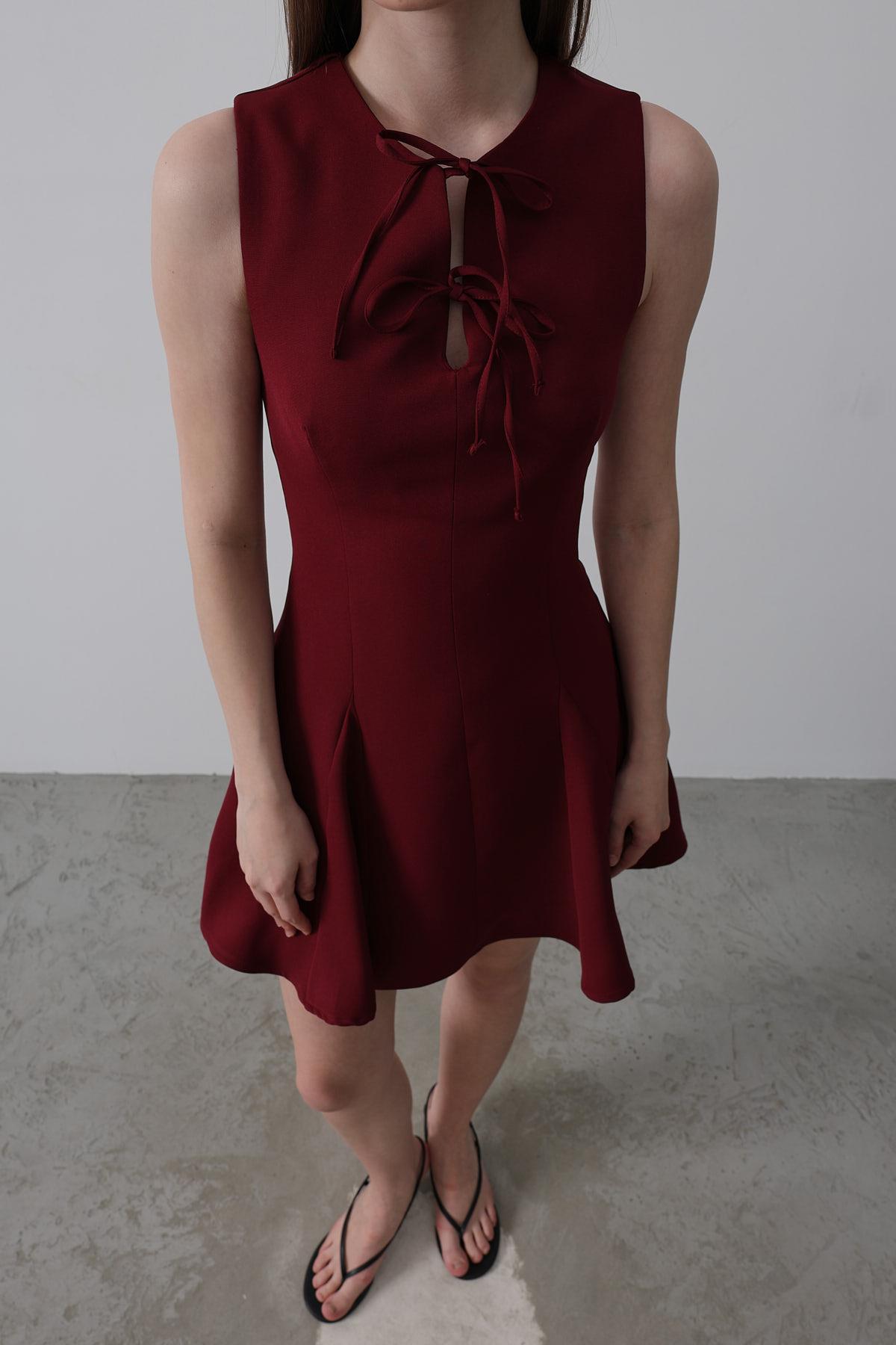 Bow Detail Zero Sleeve Mini Dress – – Burgundy