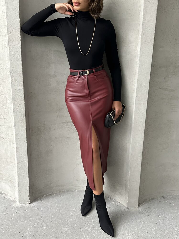Burgundy Leather Wholesale Skirt