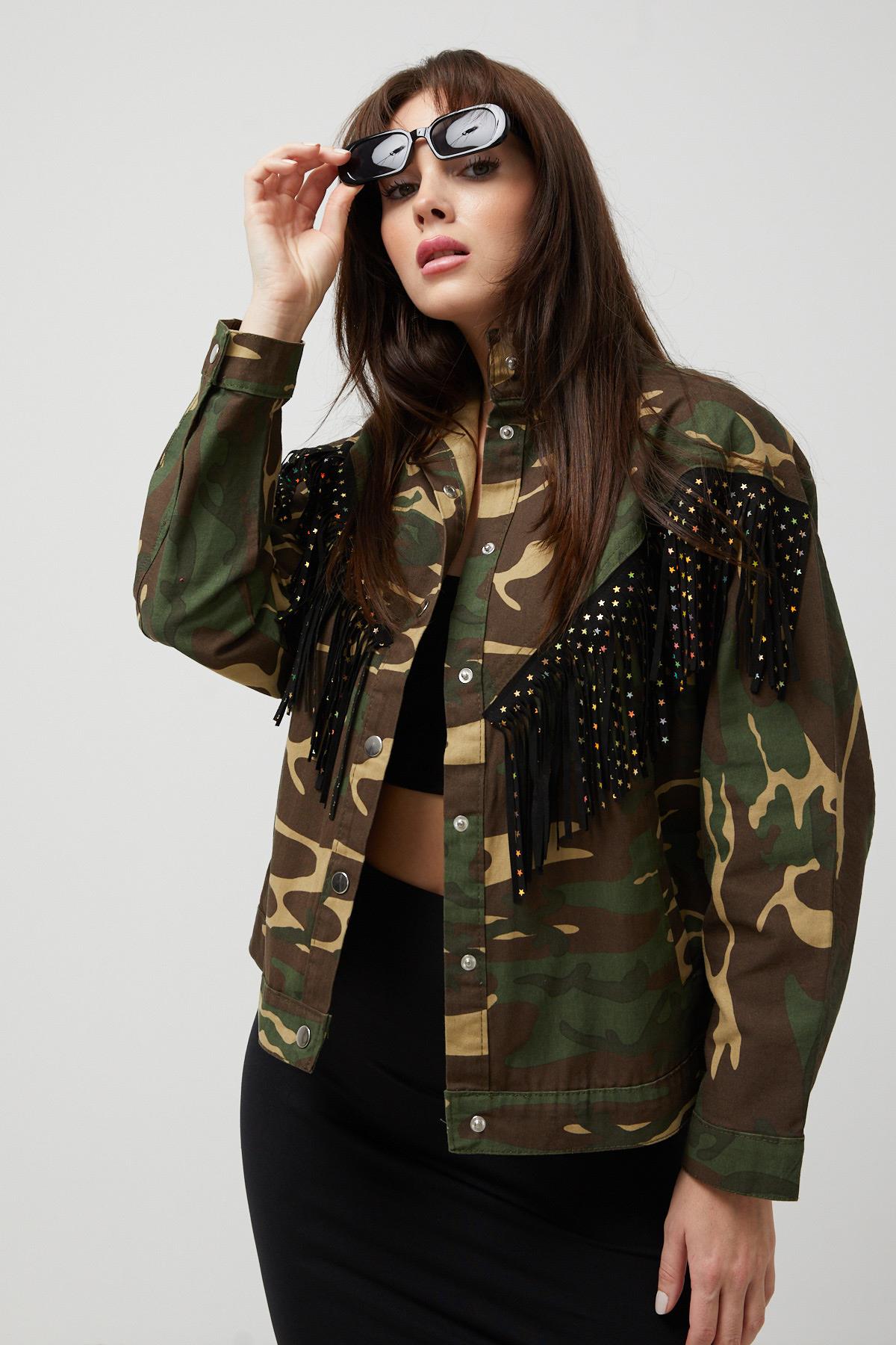Gabardine Star Tassel Camouflage Pattern Women’s Jacket Camouflage