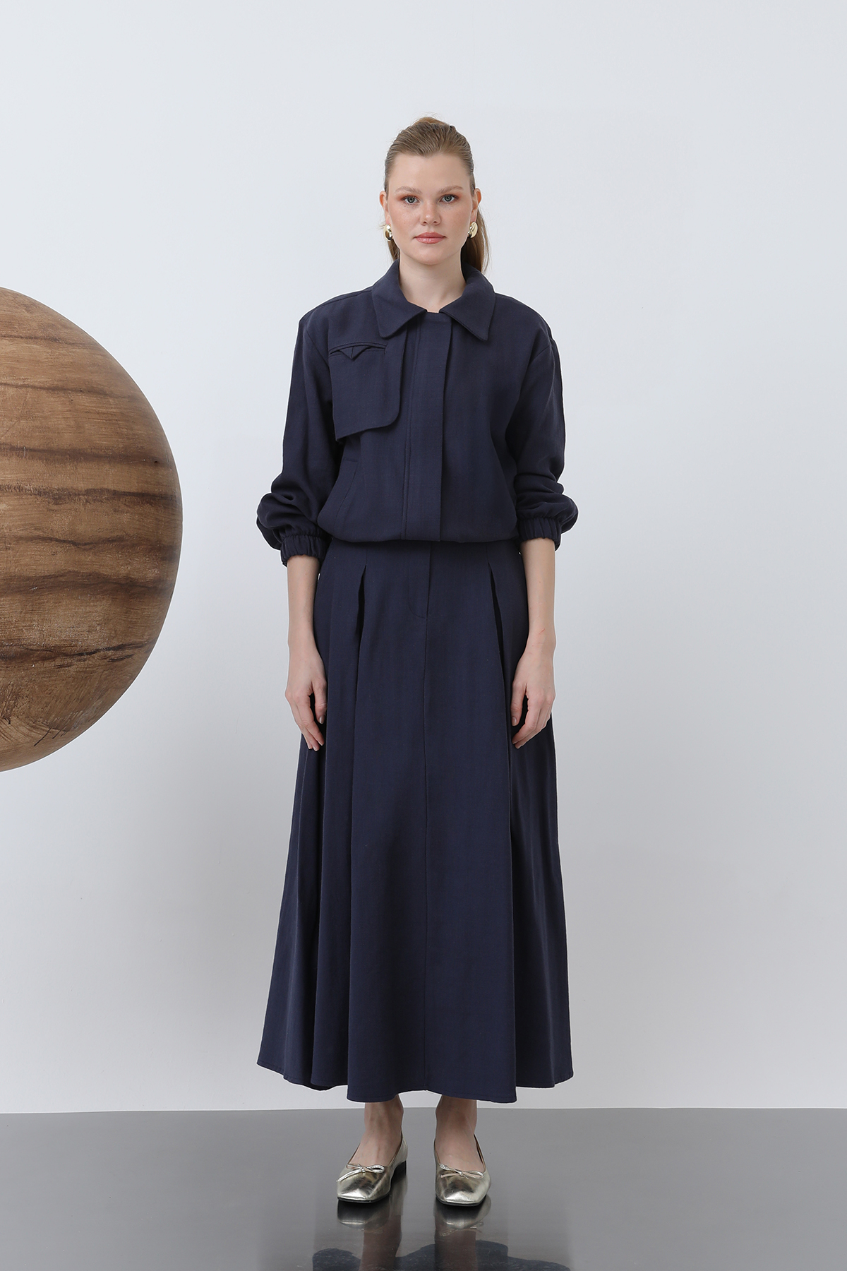 Hidden Padded Zipper Skirt Suit – Navy