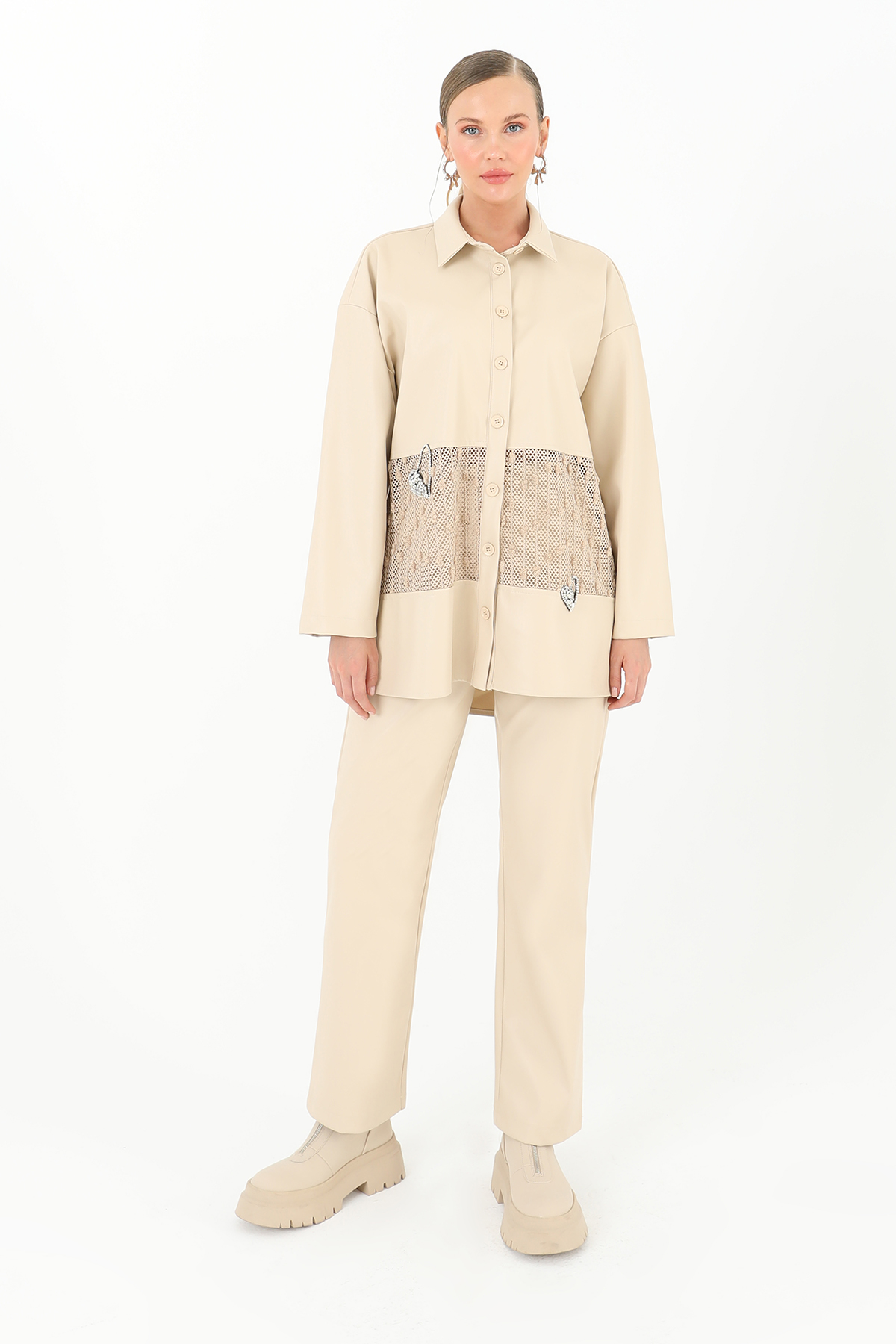 Leather Shirt With Mesh Detail