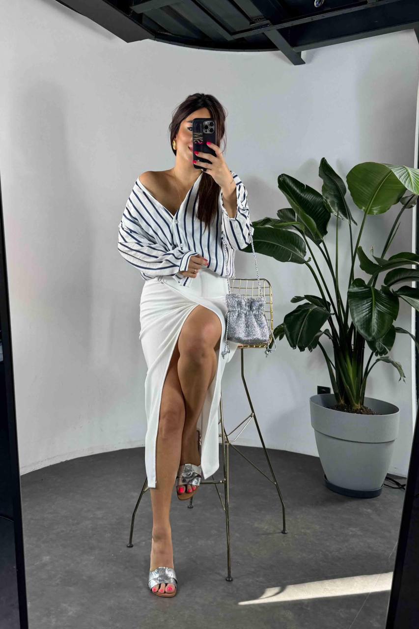 Ottoman Fabric Lycra Skirt With Buckle Detail