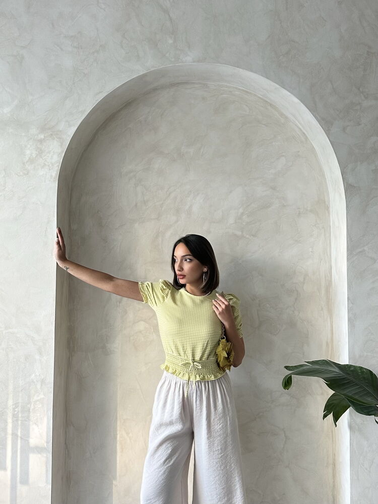 PistachioWaist Gipeli Pitikareli Wholesale Blouse