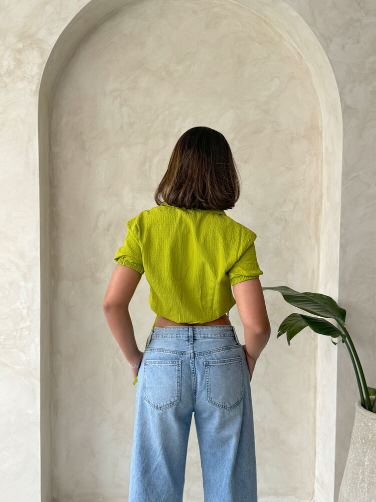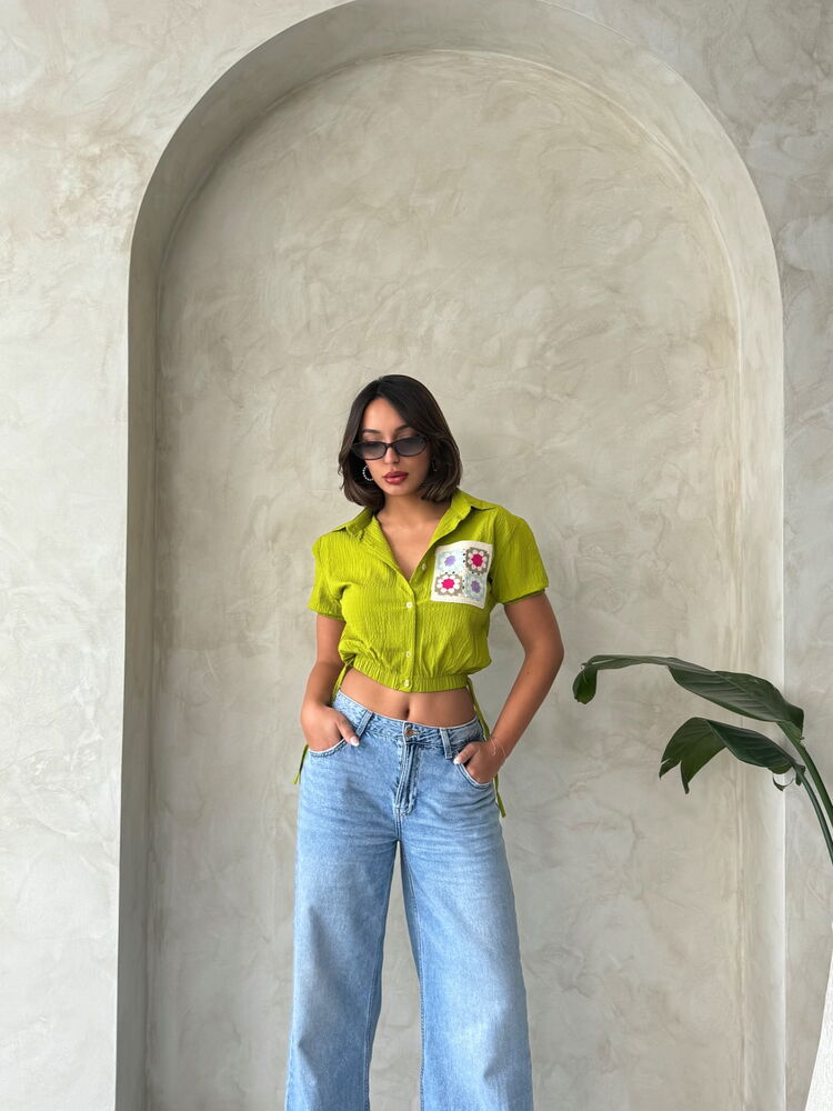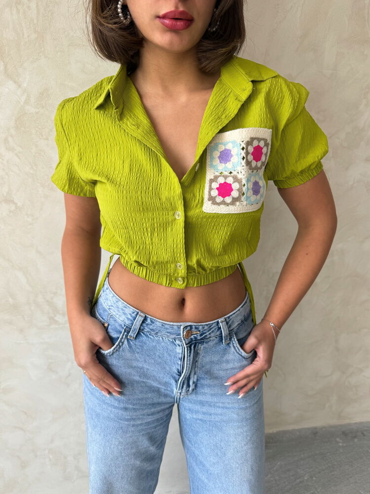 PistachioWaist Sleeve End Elastic Embroidered Pockets Wholesale Shirt