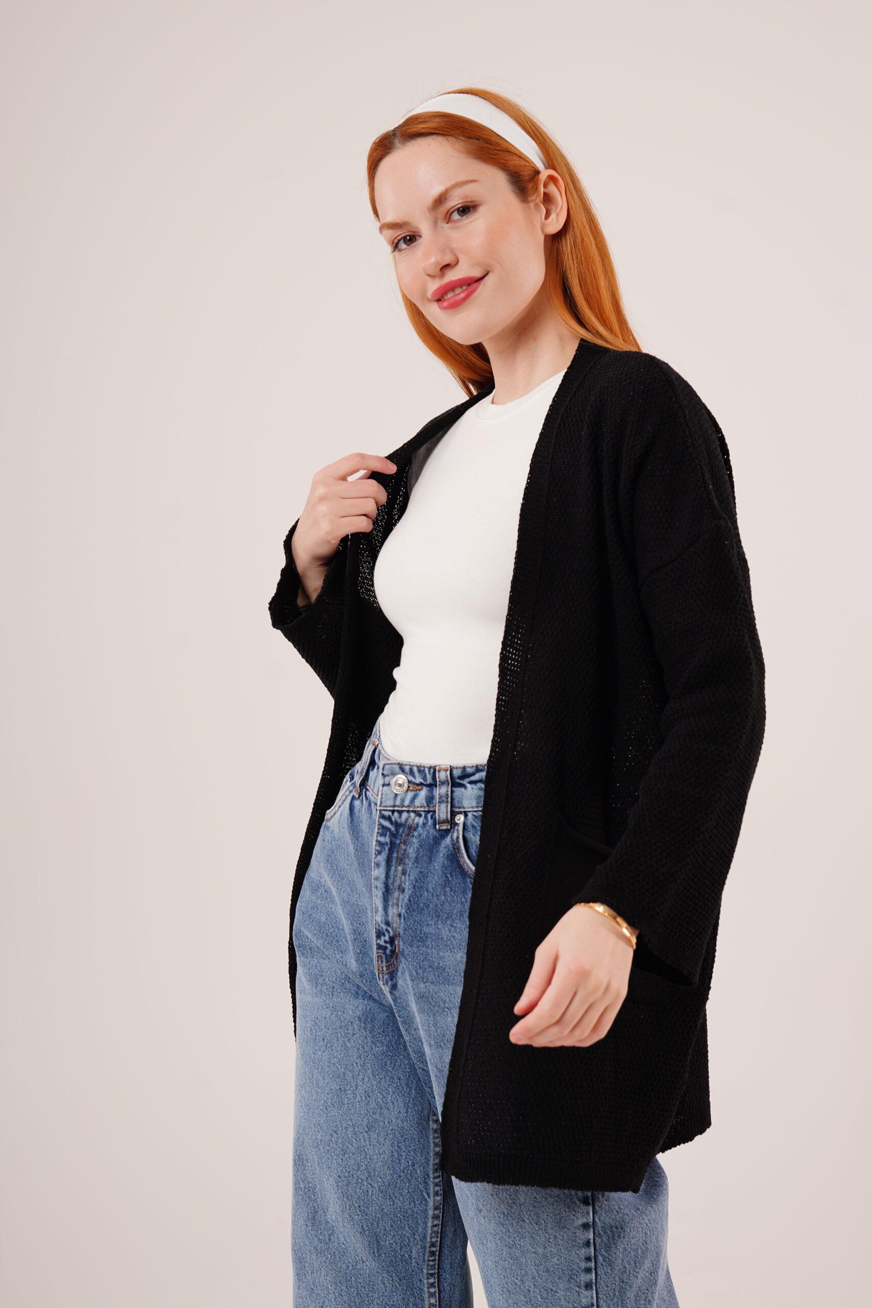 Pocket Slippery Pattern Knitwear Long WholesaleCardigan
