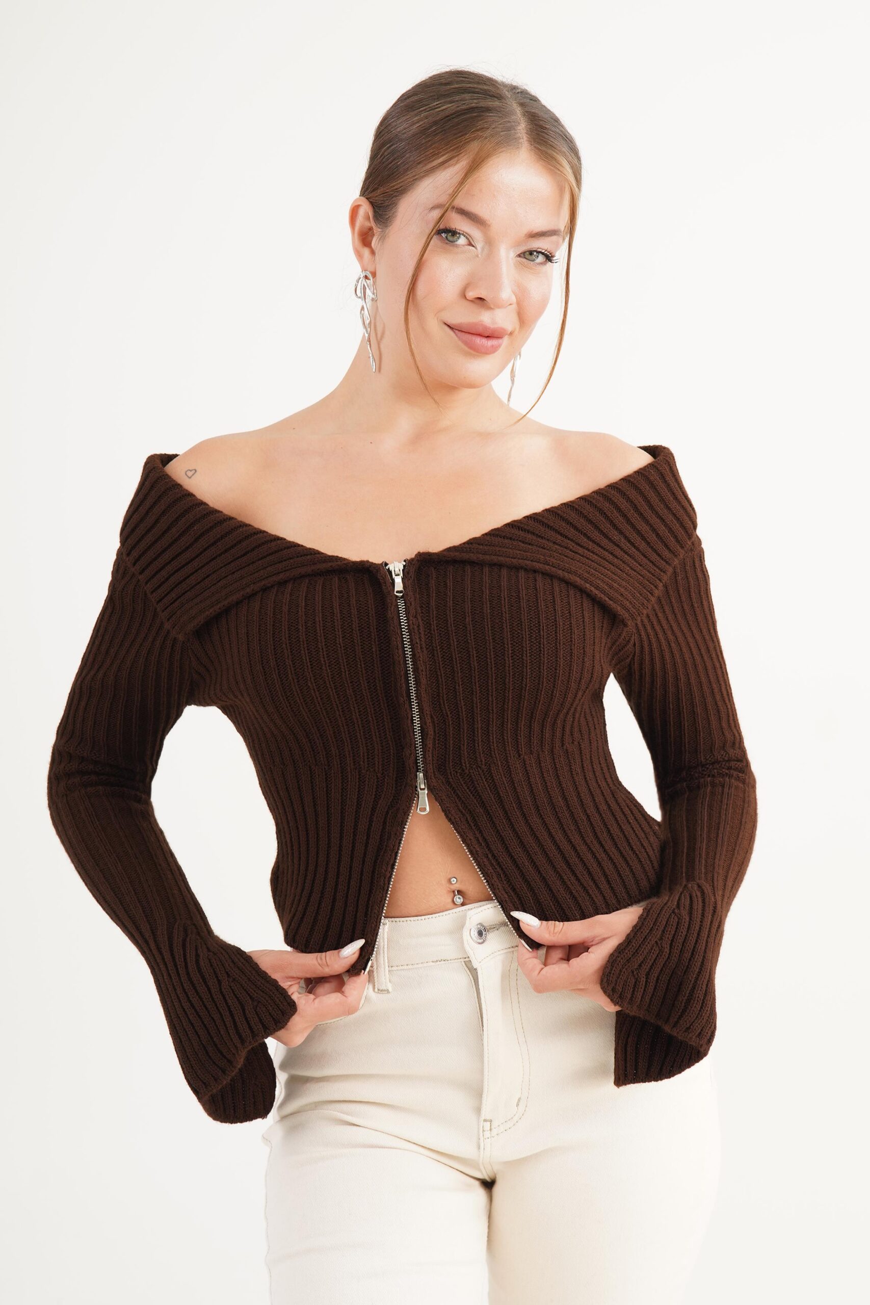 Slim Fit Zip Up Bell Sleeve Cardigan
