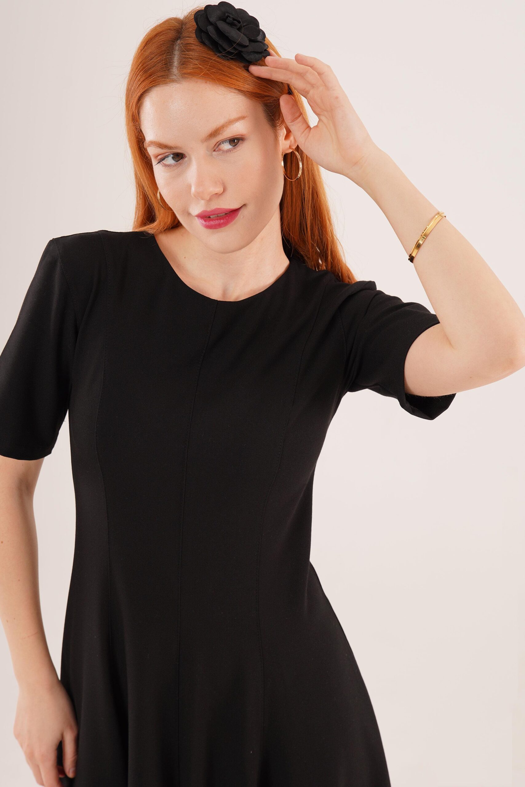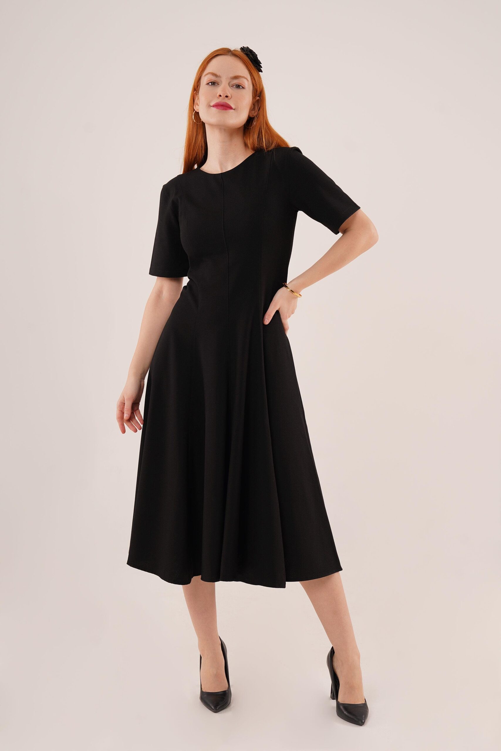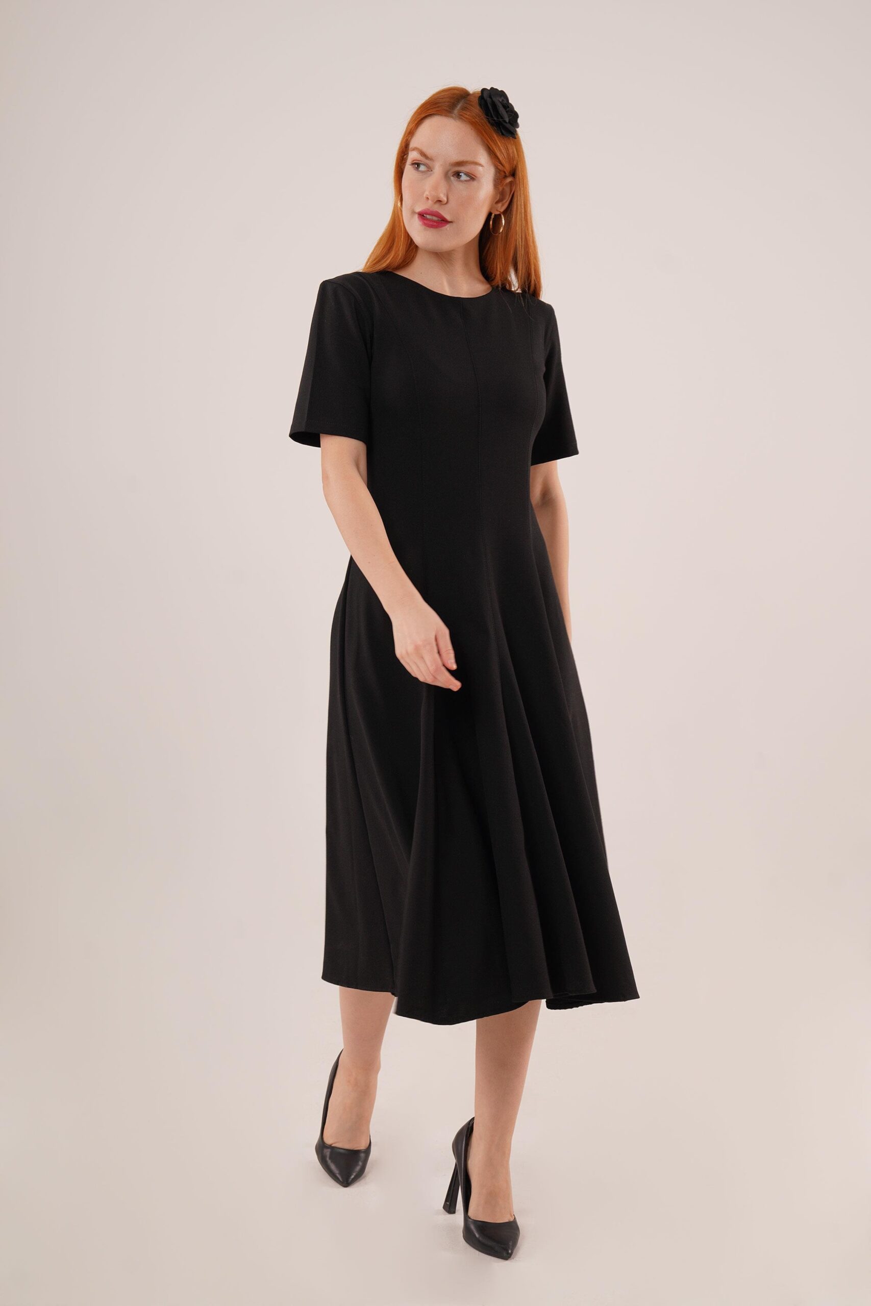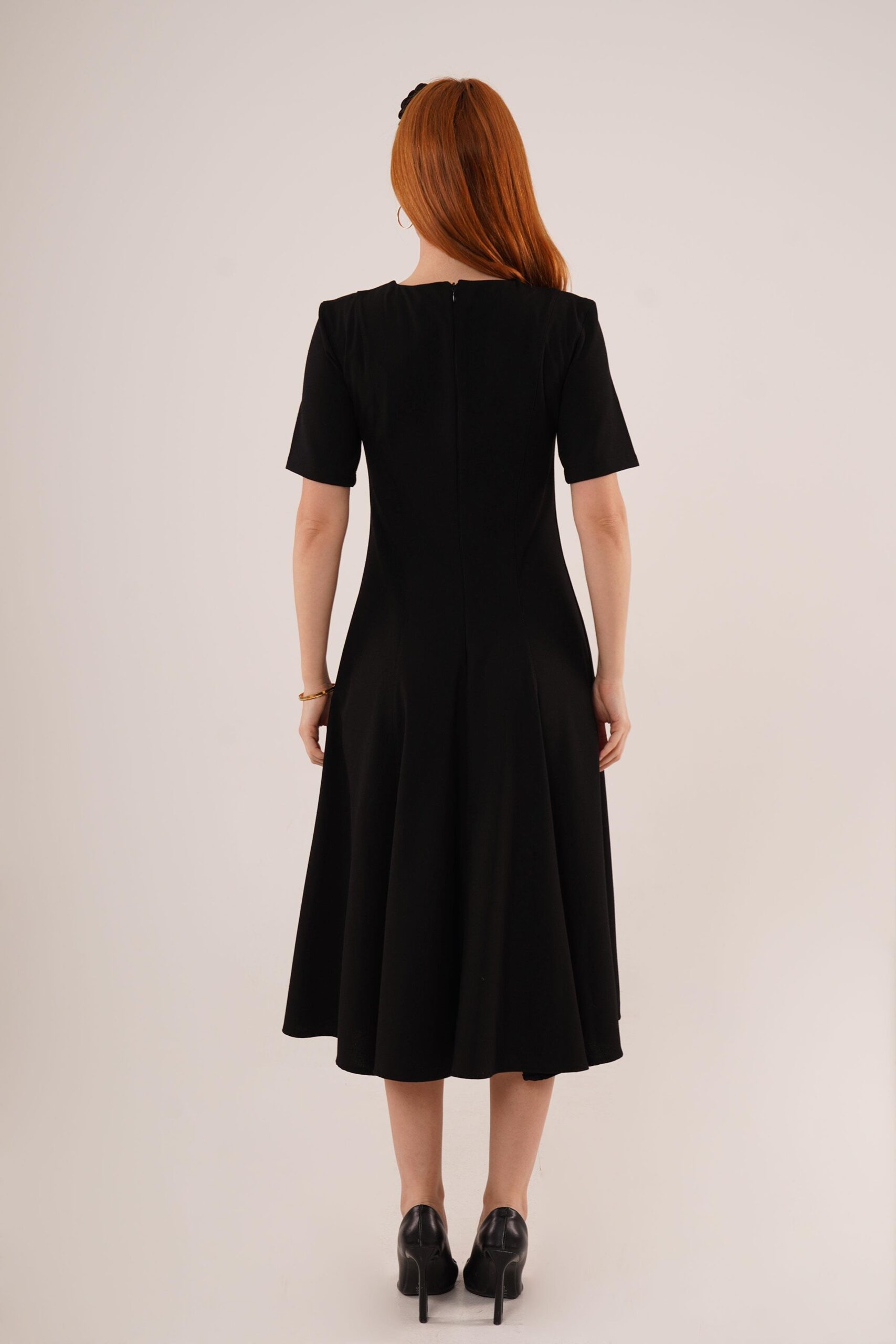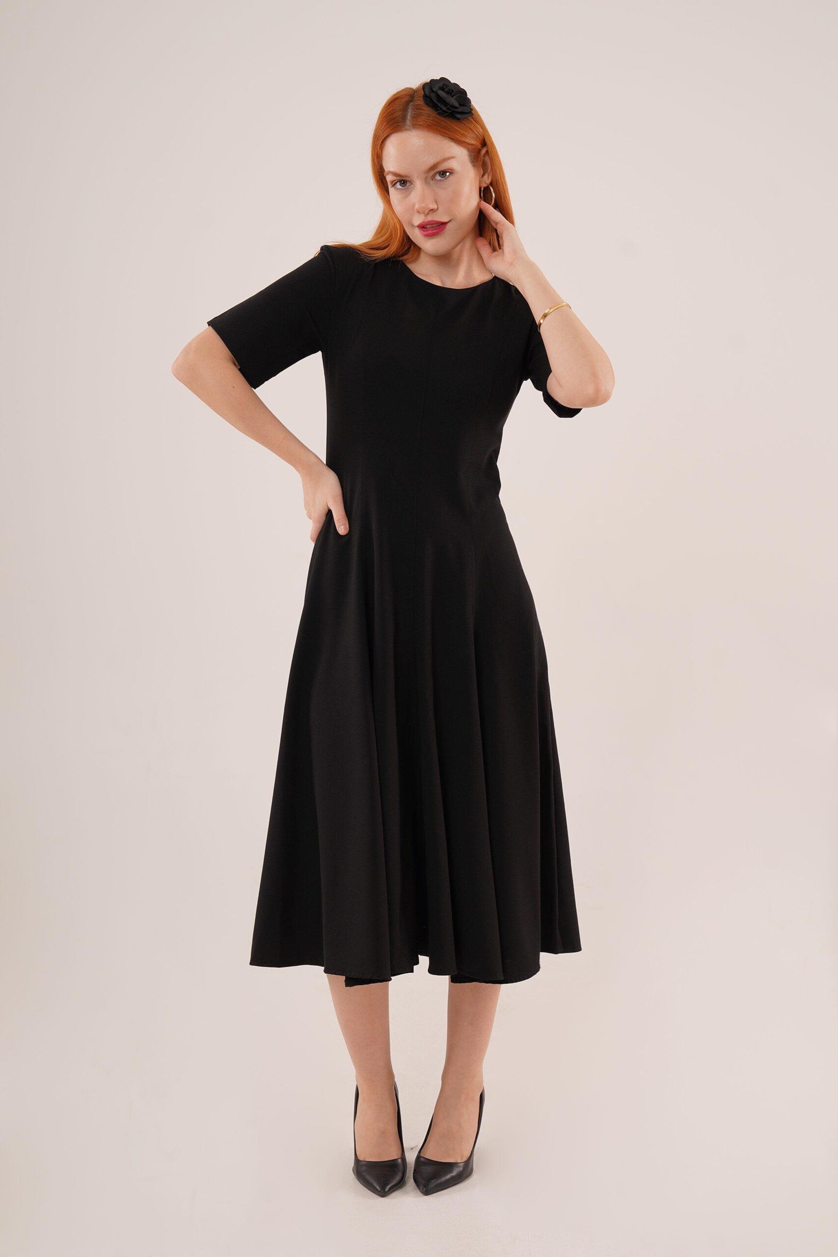 Stitching Detailed Short Sleeve WholesaleLong Dress