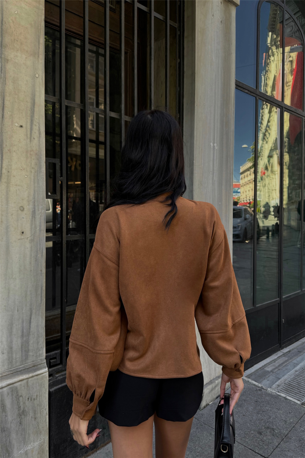 Suede Double Breasted Tie Detail Blouse – Tan