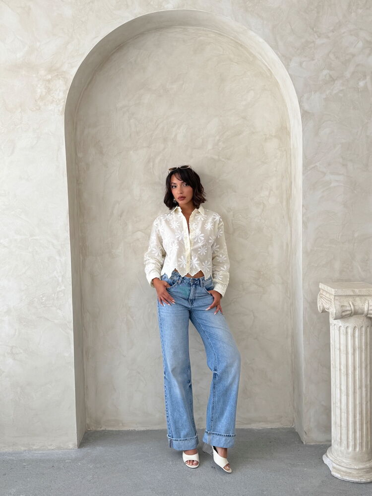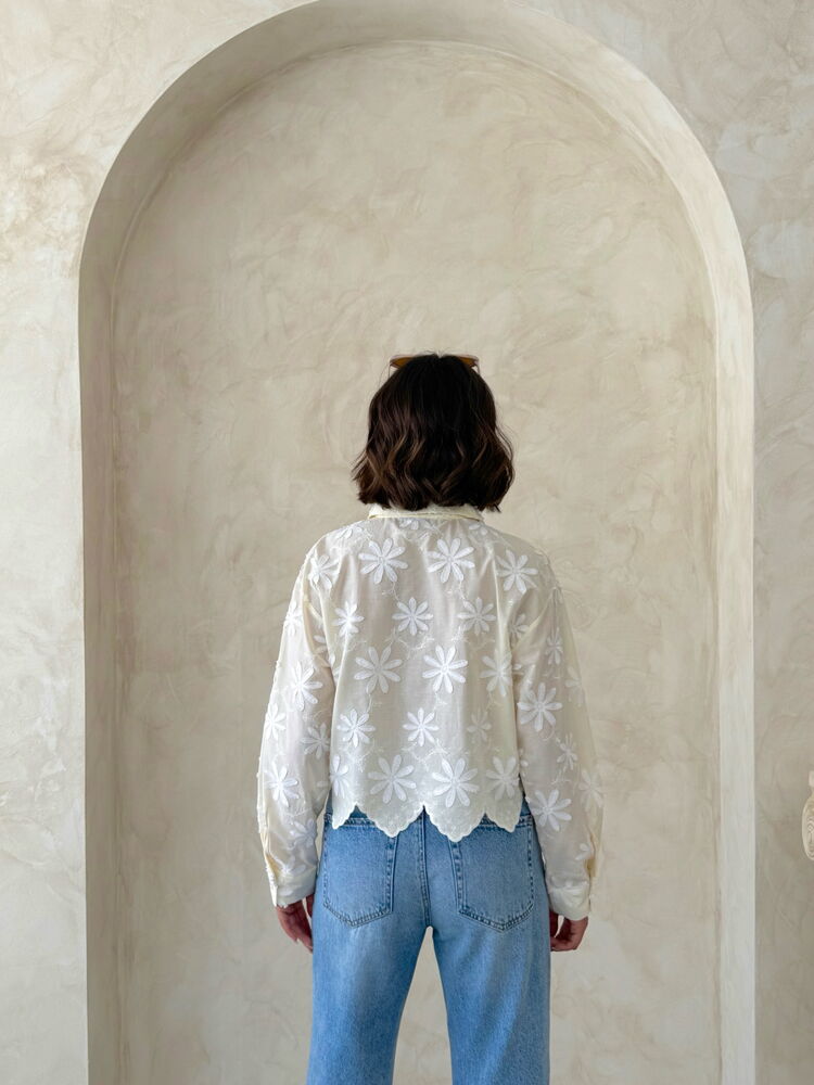 White Floral V-Neck Crop Shirt