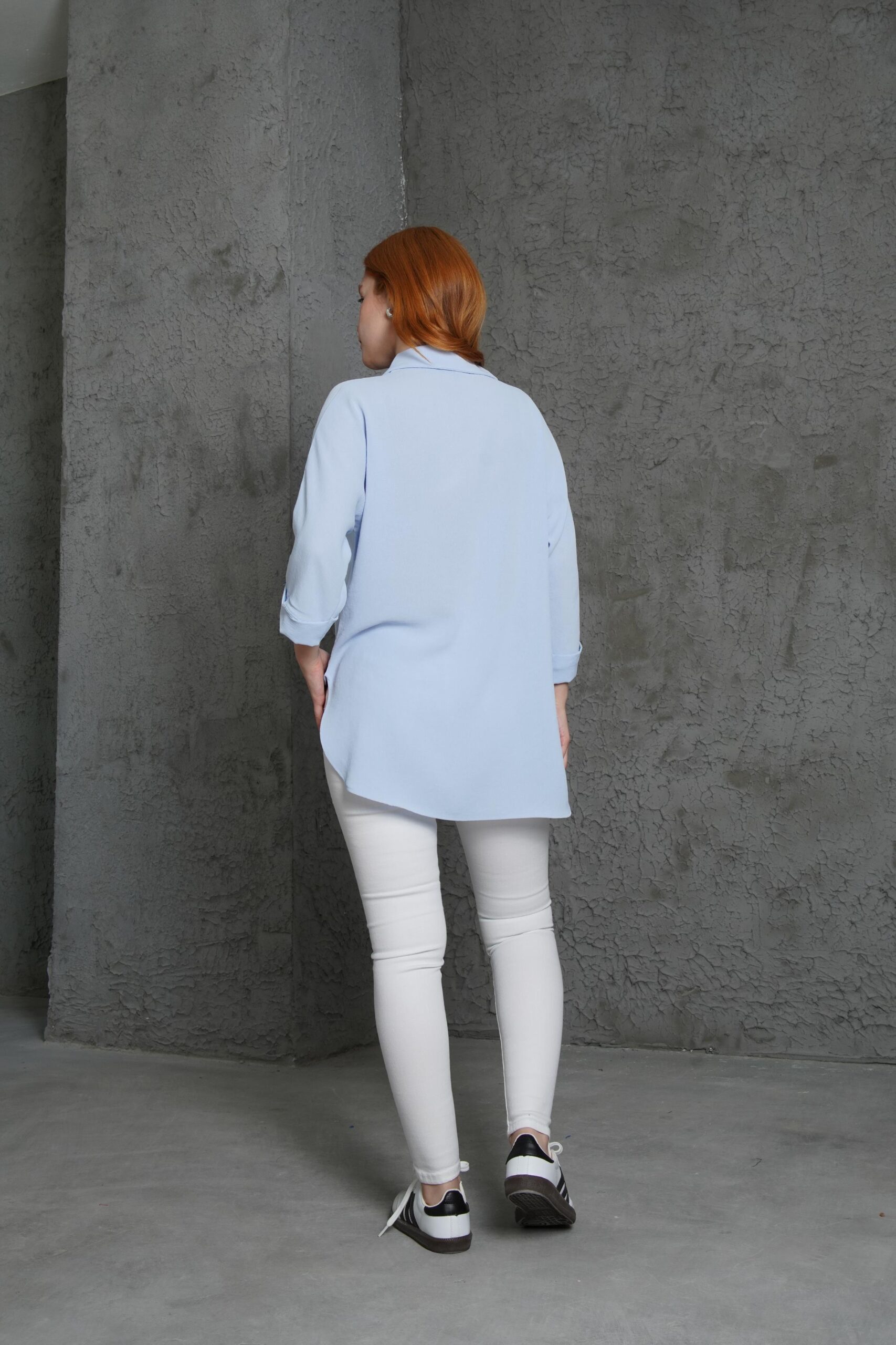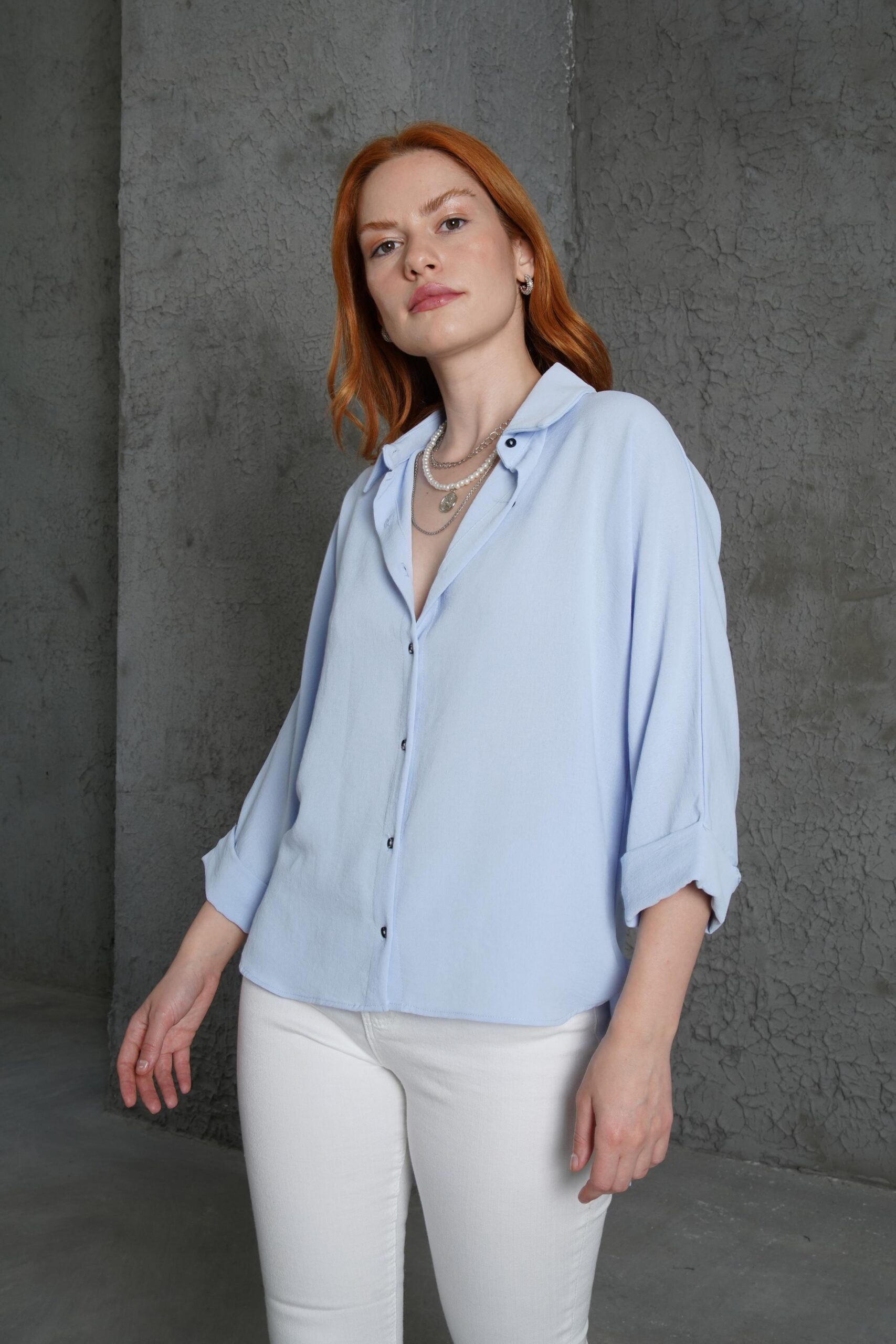 Wholesale Baby Blue Shirt With Sleeve Folding Detail