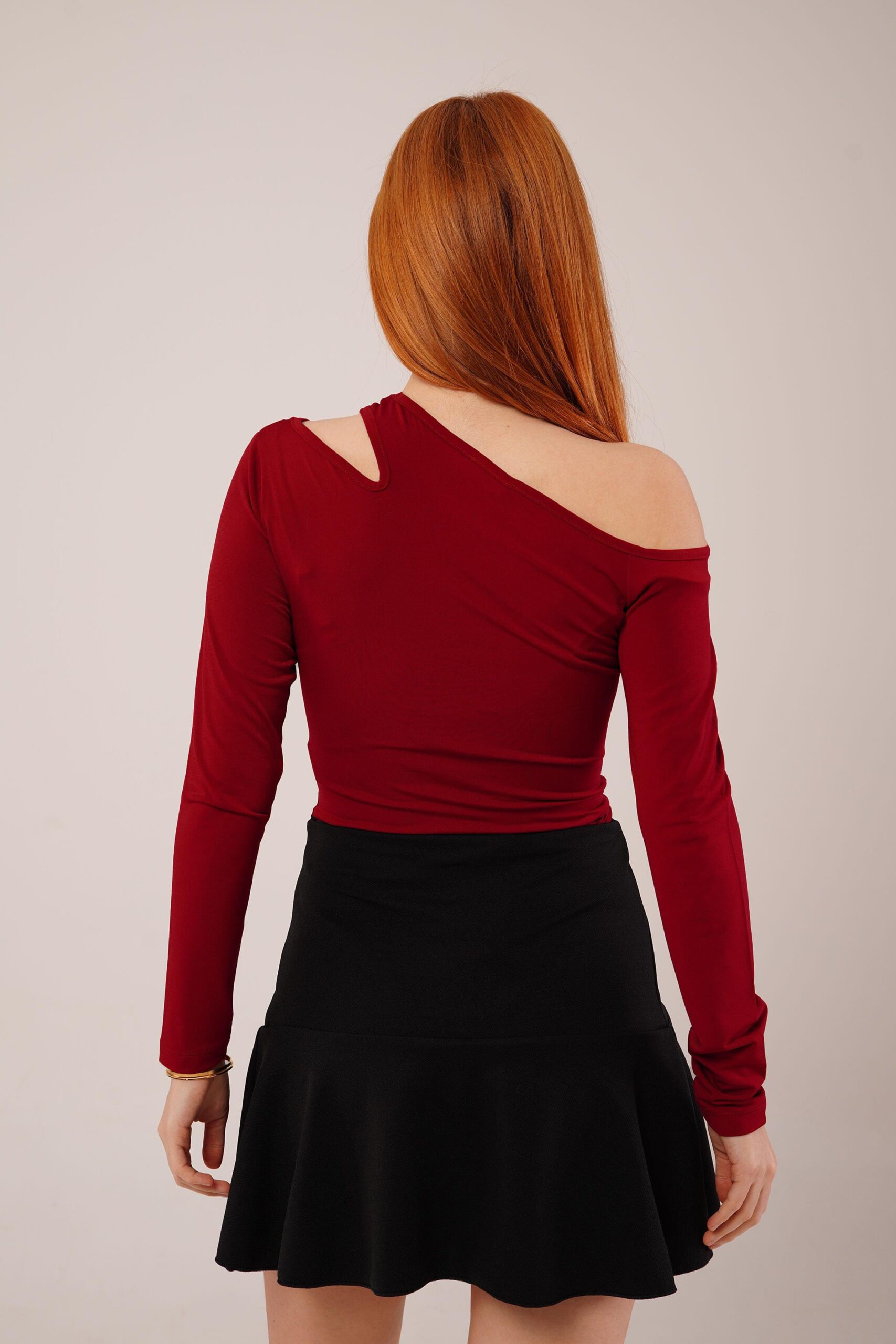 Wholesale Burgundy Blouse With Shoulder Neckline Detailed
