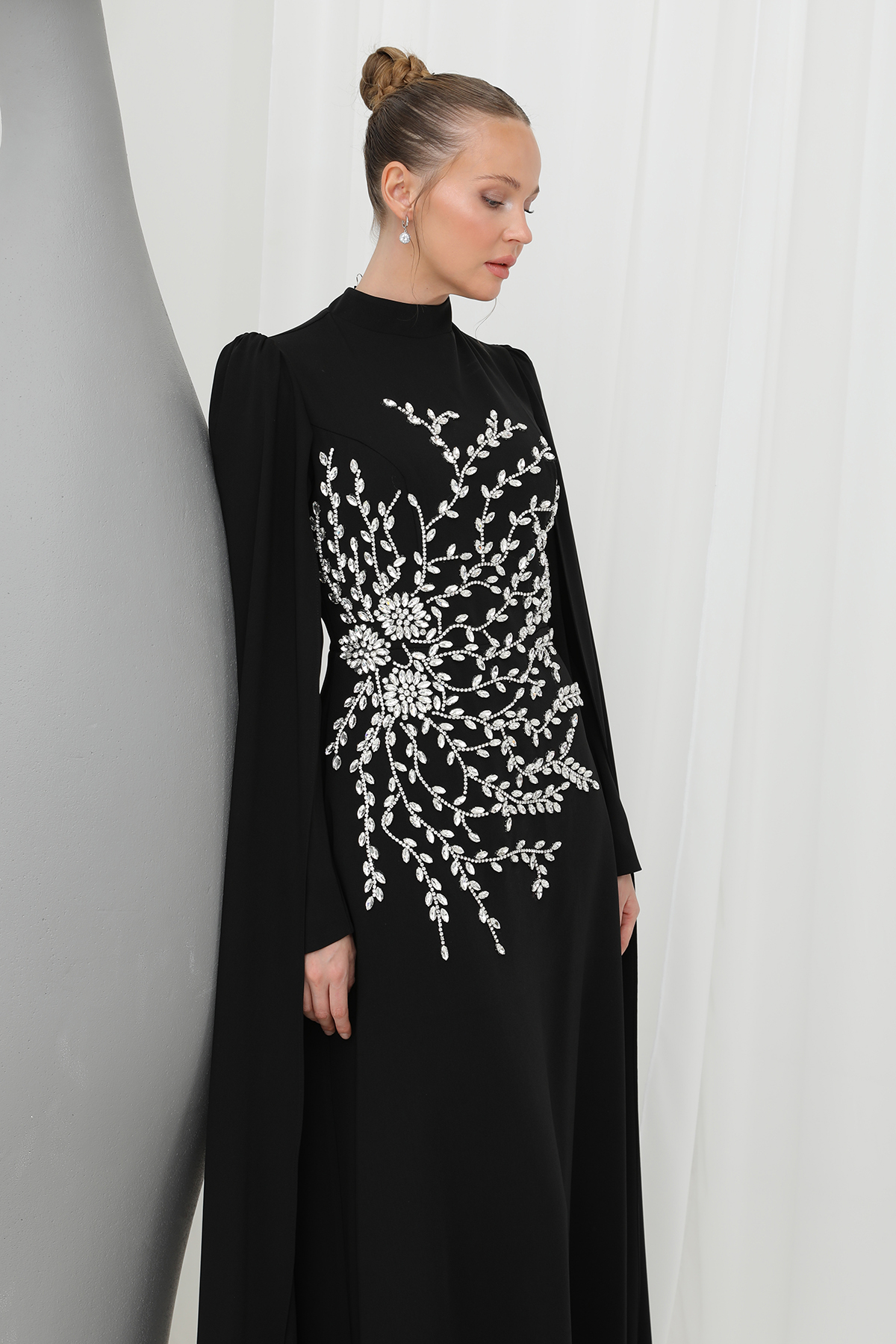 Women’s Leaf Stone Embroidered Cape Evening Dress