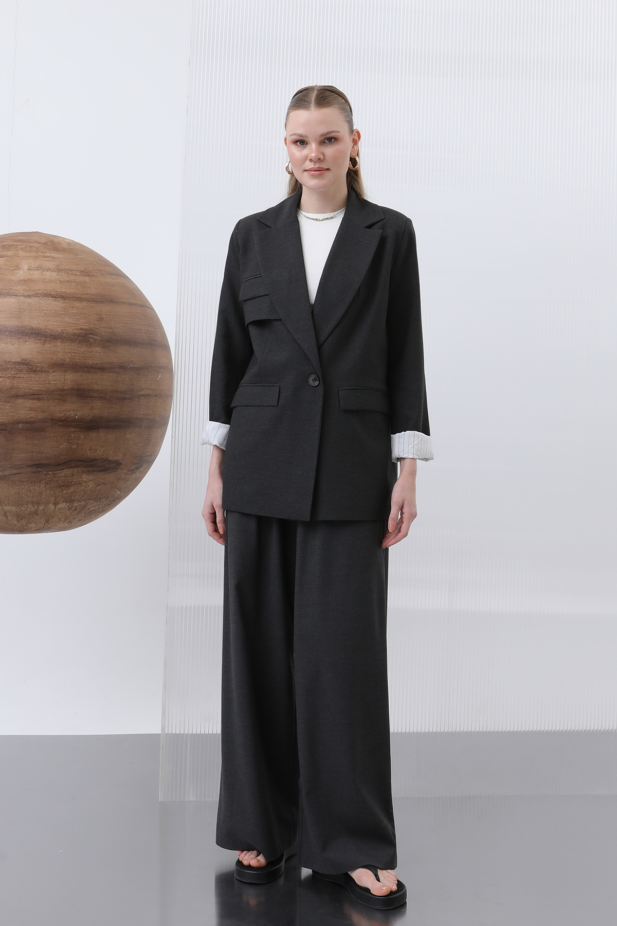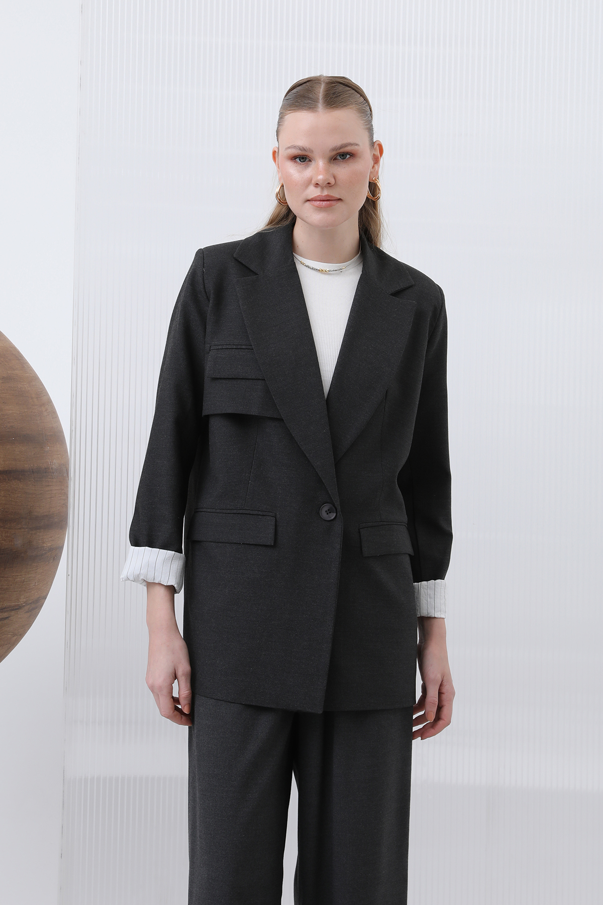 Women’s Stripe Garnished Blazer Jacket With Pockets