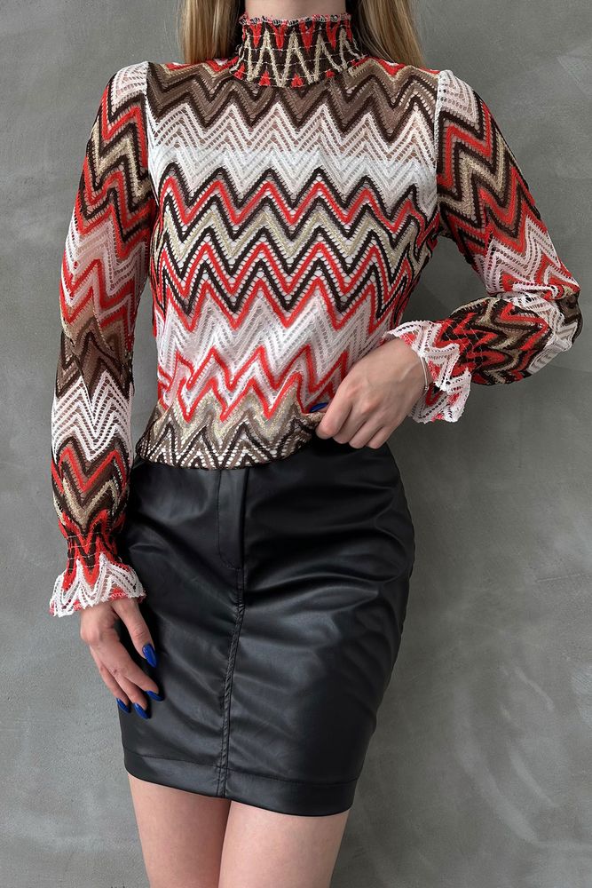 Zigzag Patterned Blouse – Orange